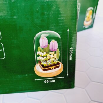 Figura armable de tulipán en cúpula. Incluye la base y la cúpula como se ve en la imagen. Mide 12,6cm de alto y 9,5cm de diametro Tiene 531 piezas