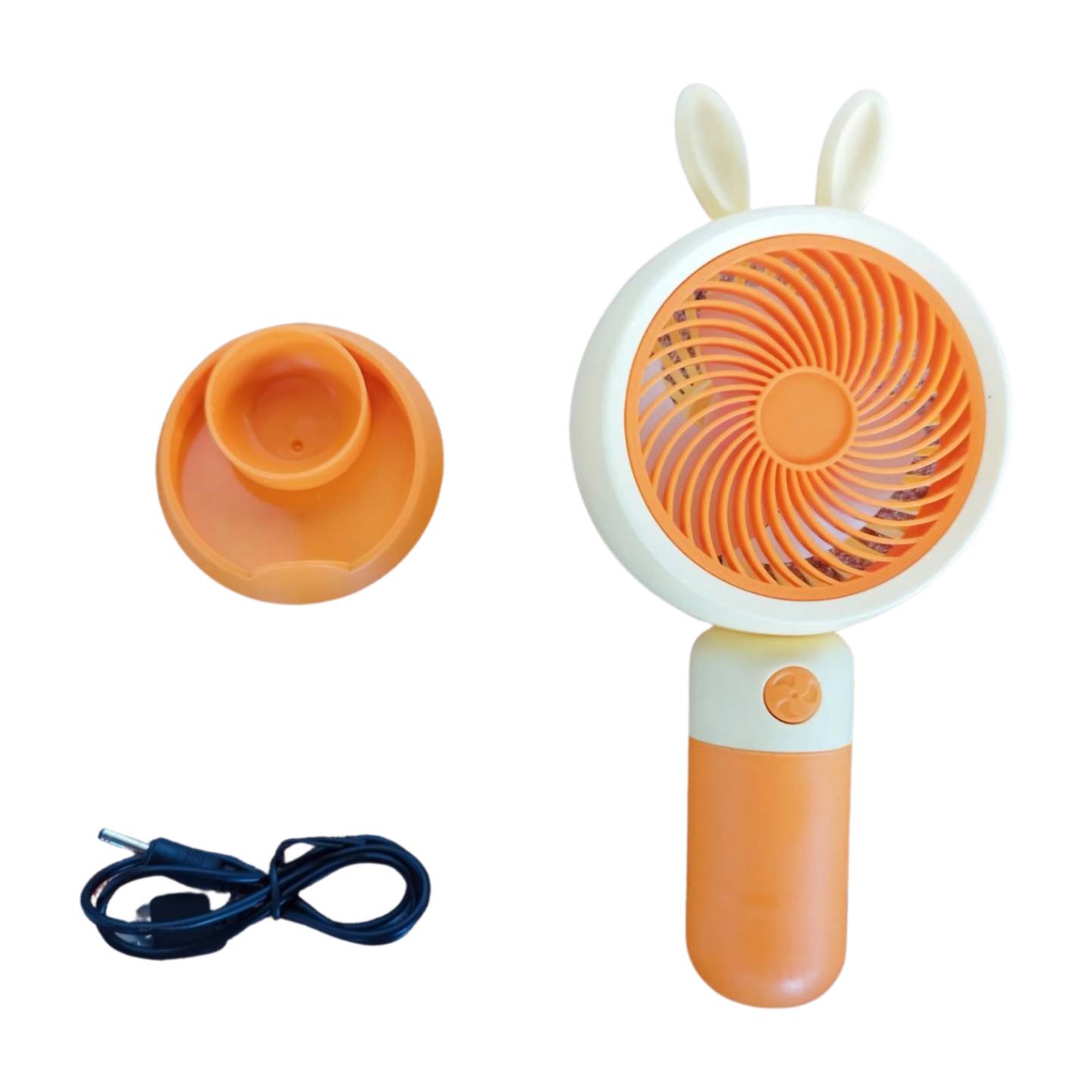 Abanico de mano de Capybara con base, incluye cable USB para cargar.
